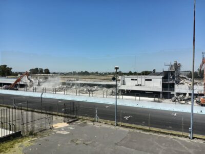 Te mostramos los trabajos que se llevan adelante en el autódromo «Oscar y Juan Gálvez», donde se han demolido los viejos boxes y se continúa con la primera etapa del plan de remodelación.