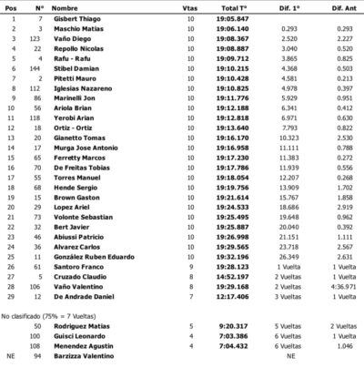 El clasificador final de la carrera