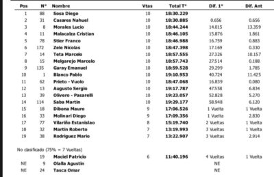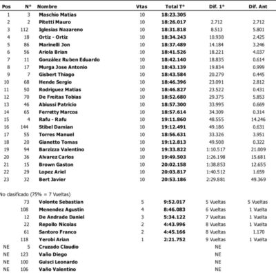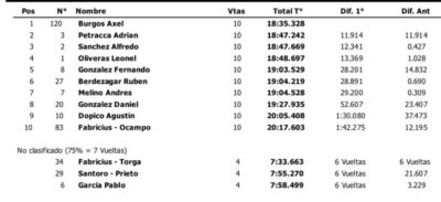 Ya en el cuarto puesto llegó el binomio Ortiz-Ortiz, perseguido por Jon Marinelli, Brian Ariola, Rubén González, José Antonio Murga y el ganador de la primera carrera, Tiago Gisbert. Cerró el «Top 10» José Antonio Murga.