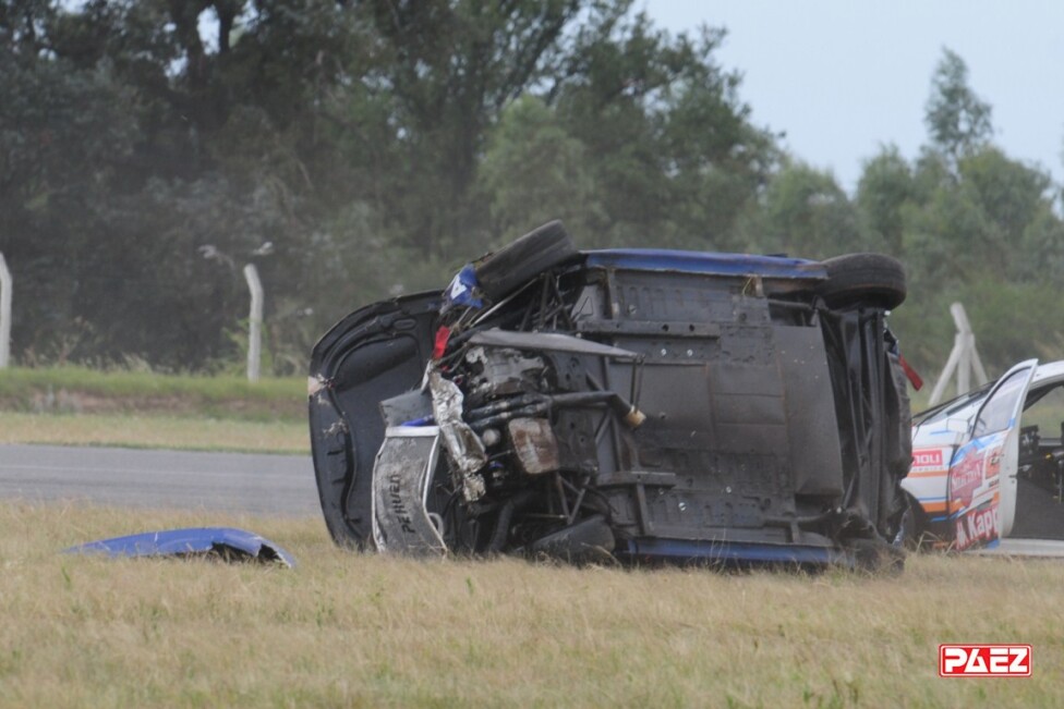 La secuencia muestra cómo el flamante auto que se ponía en pista para correr en Clase 2 de Turismo Nacional fue perdiendo elementos de carrocería y suspensión durante el dramático vuelco, del cual afortunadamente Lepphaille no sufrió lesiones de consideración, ante la protección de la célula de seguridad.