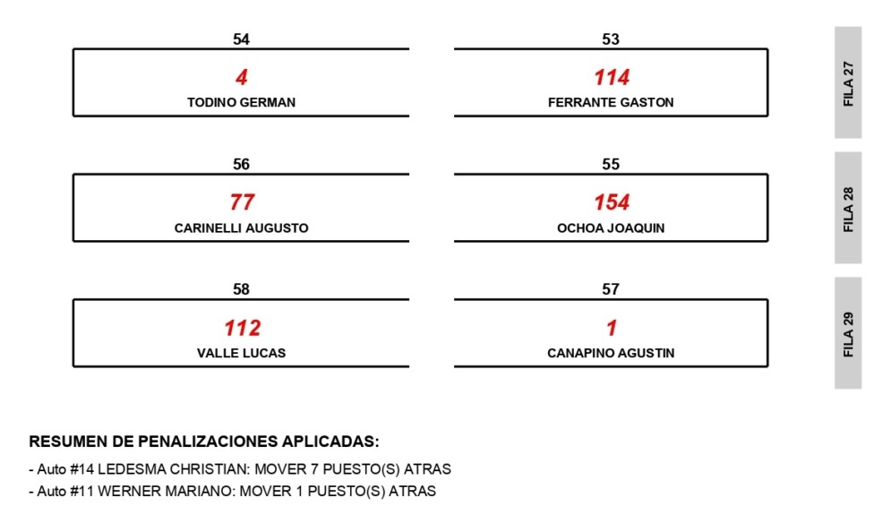 TC – GRILLA DE LA FINAL – VIEDMA – 25 VUELTAS