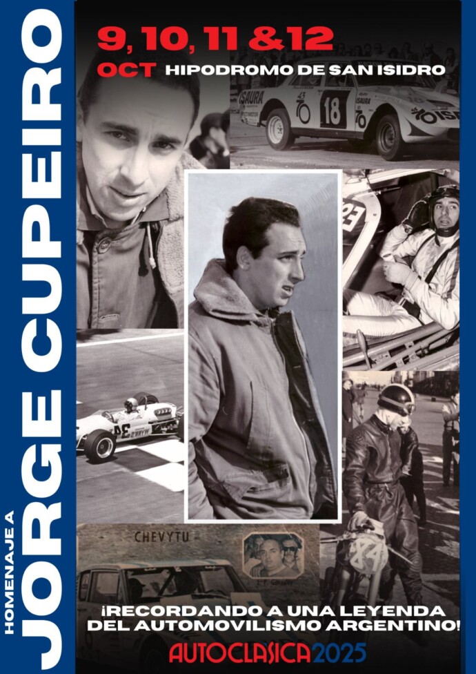 Autoclásica 2025, el evento más importante de autos y motos clásicos de Sudamérica, rendirá homenaje a una de las grandes leyendas del automovilismo argentino: Jorge Cupeiro, durante los días 9, 10, 11 y 12 de octubre, en el tradicional Hipódromo de San Isidro, en donde los visitantes podrán recorrer una exposición especial dedicada al recordado piloto, figura clave del deporte motor nacional.