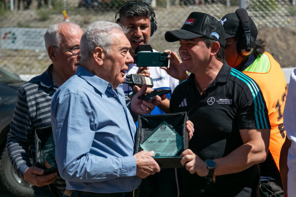 «Símbolo del periodismo automovilístico y creador del imperio de transmisiones «Campeones». Por mantener viva la pasión por el automovilismo y transmitirla a generaciones de fanáticos. Con gratitud y reconocimiento celebramos juntos la reinaguruación de nuestro Autódromo del Zonda, ícono del automovilismo argentino» reza la placa con la que las autoridades salutaron a nuestro director.