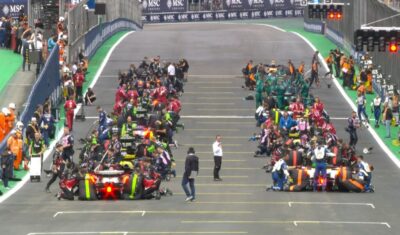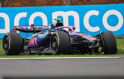 El Alpine del argentino perdió adherencia en el frenaje de la «S de Senna» y esto motivó un impacto contra las defensas de la «Curva del Sol», segundos después que le ocurriera lo mismo al McLaren de Piastri y al Sauber de Hülkenberg.