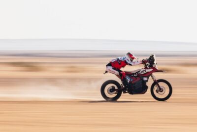 Con la moto eléctrica china, el piloto cordobés se impuso en la etapa maratón y con ello se mantiene en el podio de la categoría que reúne a vehículos con energías renovables.