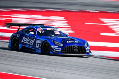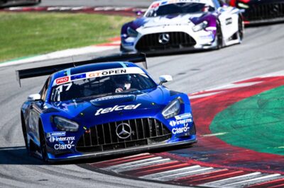 El Mercedes AMG GT3 Evo que comparten el argentino y el mexicano cruzó la meta en la 3ª posición de la carrera 1 del International GT Open, pero dos sanciones determinaron que perdieran 4 lugares.
