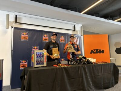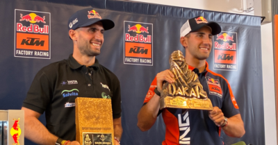 En la conferencia de prensa post Dakar 2026, Kevin y Luciano exhibieron la distinción recibida luego de haberse convertido en los primeros hermanos en ganar una misma etapa, cada uno en su divisional.