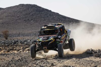 El piloto colombiano de Antioquía y su copiloto cordobés de Río Tercero cerraron la 12ª y penúltima etapa liderando con el Land Cruiser en la categoría H4; el lituano Raisys domina en la general.