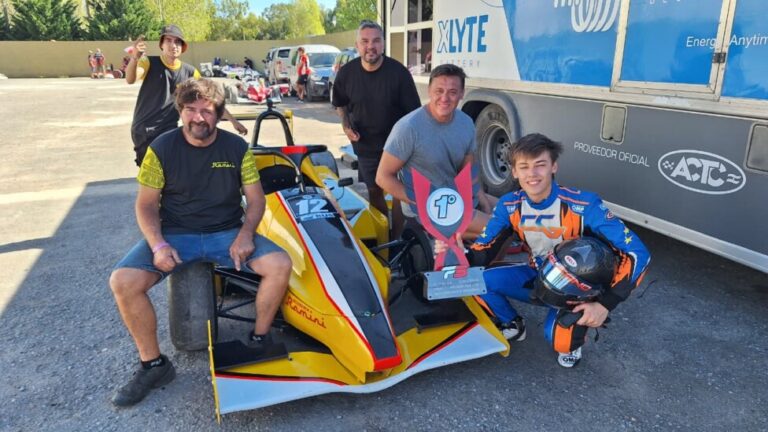 Se disputó la primera carrera del fin de semana en La Plata, y el piloto de Villa Luzuriaga (Buenos Aires) festejó con los integrantes de integrante de Scuderia Ramini, a la cual se sumó desde esta fecha.