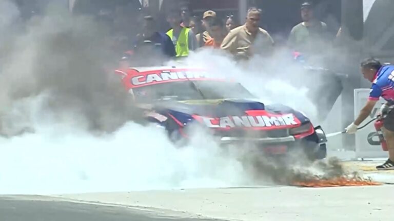 En «Buen día, Campeones», el piloto de Escobar (Buenos Aires) fue protagonista de un momento difícil al detenerse con el Camaro en boxes con fuego en el habitáculo y en el cual sufrió quemaduras leves.