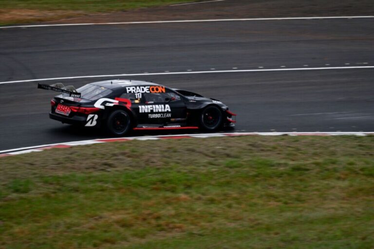 Junto a su equipo, el piloto entrerriano cumple con una de sus pruebas en la pista de La Plata de cara al comienzo de la Copa de Oro RUS en San Luis.