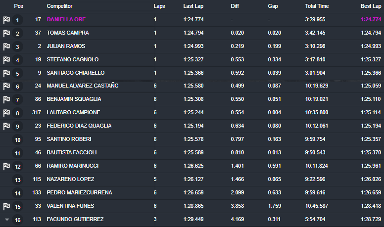 «Ahora tengo un auto que me permite pelear la punta» reconoció Oré en diálogo con Campeones. Se trata de la primera «pole» para ella, que viene intentando revertir un año difícil. «Empezamos un poco mal, con abandonos, problemas en el auto» señaló la ahora representante del Ferreira Motorsport.