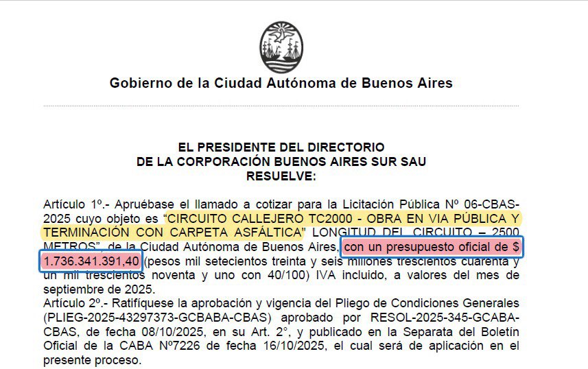 En marzo, el TC2000 correrá en las calles de Buenos Aires, en las inmediaciones del autódromo. La licitación también está aprobada para el reasfaltado de la Avenida Roca y ya se empezaron a trasladar los muros de contención del Gálvez a las calles.