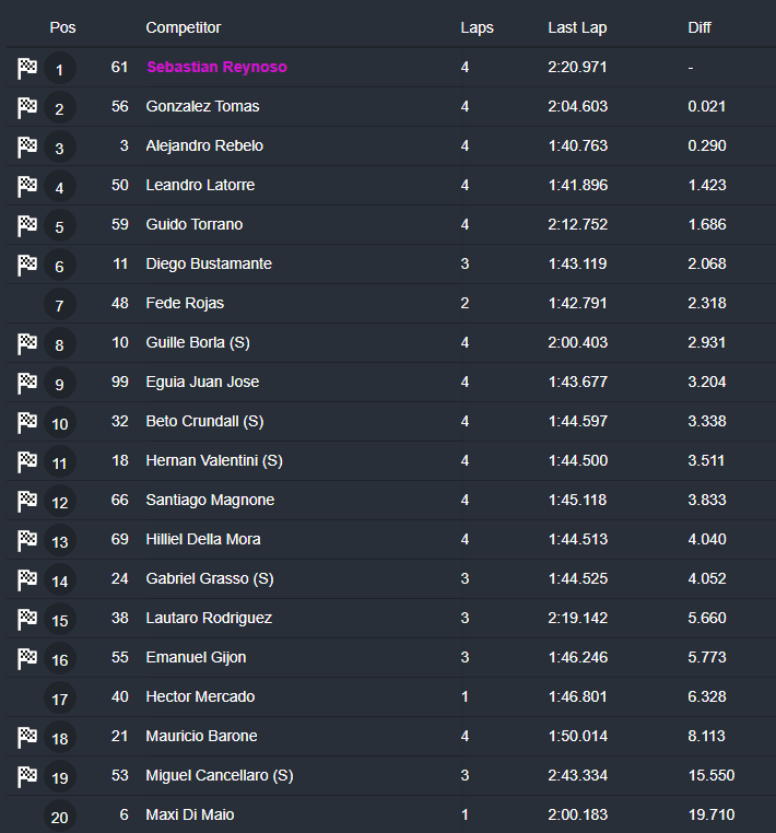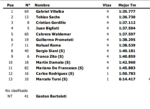 Por su parte, Tobías Sachs y Cristián Gordillo completaron a los primeros 3 clasificados. Juan Bigliati, Waldemar Cabrera, Guillermo Promesti, Nahuel Roma, Sergio Siani, Franco Zito y Martín Damato completaron el «Top 10».