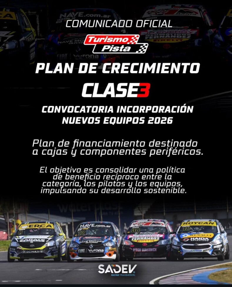 La Asociación Pilotos Turismo Pista lanzó su “Plan de Crecimiento 2026”, donde convoca a nuevos equipos a incorporarse a la Clase 3. La categoría ofrece una estructura de financiamiento destinada a cajas y componentes periféricos, con el compromiso de los equipos de tener asistencia perfecta en el calendario deportivo.