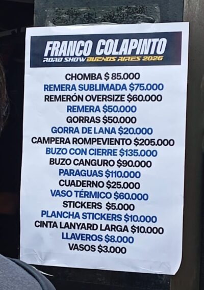 Para quienes estén presentes y quieran llevarse un recuerdo, estos son los precios del merchandising oficial.