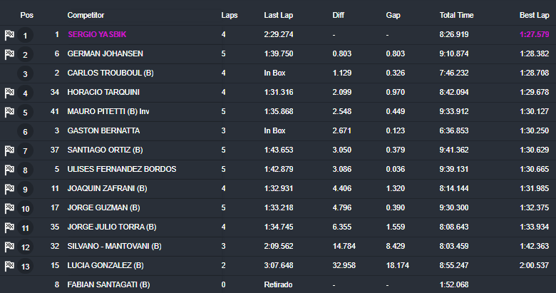 «Estoy muy contento con el rendimiento del auto. Pudimos demostrar en la clasificación el potencial que tenemos» indicó por su parte Carlos Trouboul, el más destacado entre los pilotos de la Clase B, que además logró meterse en el Top 3 de la clasificación la general.