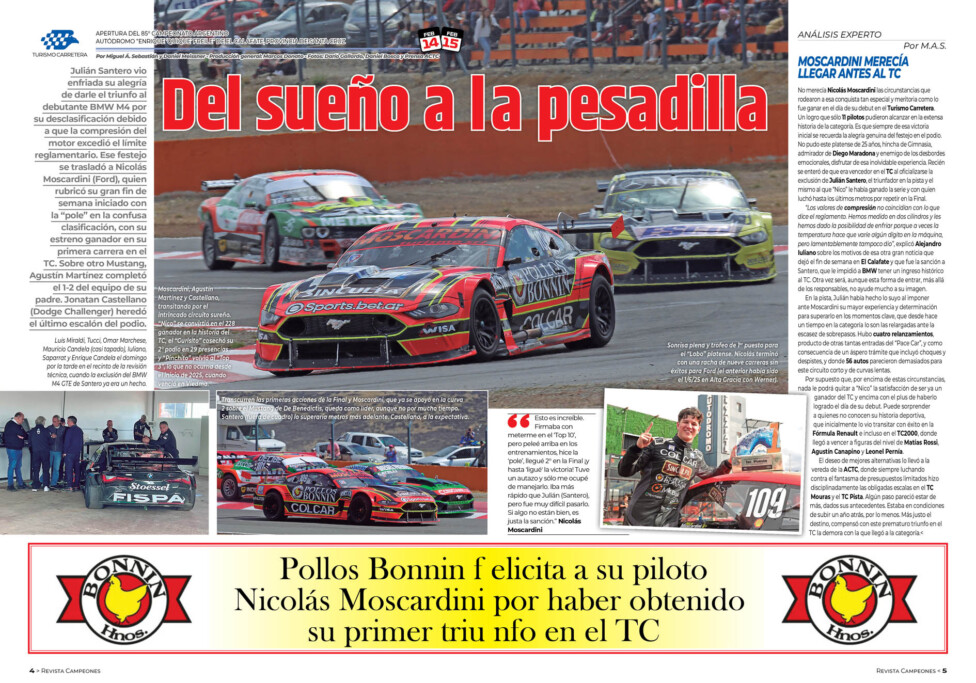 Al piloto pinamarense lo escoltó Alberto Jaime con Dodge, quien quedó a 0s727. Tercero se ubicó el lìder del campeonato, Jeremías Scialchi con Torino, a 0s730, seguido por Ignacio Esquivel (Chevrolet), a 0s810, e Ignacio Faín (Dodge) que había encabezado la primera tanda y se ordenó a 0s828.