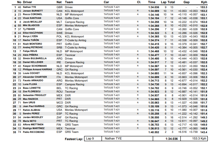 Simón Bulbarella completó el primer día de trabajo de la fecha inicial de Fórmula 4 Española en el circuito de “Ricardo Tormo” en Valencia. A bordo del monoplaza del equipo Drivex, ya había girado más temprano y culminó con un registro veloz de 1m35s141 en la mejor de las 14 vueltas que recorrió en los 4005 metros de trazado.
