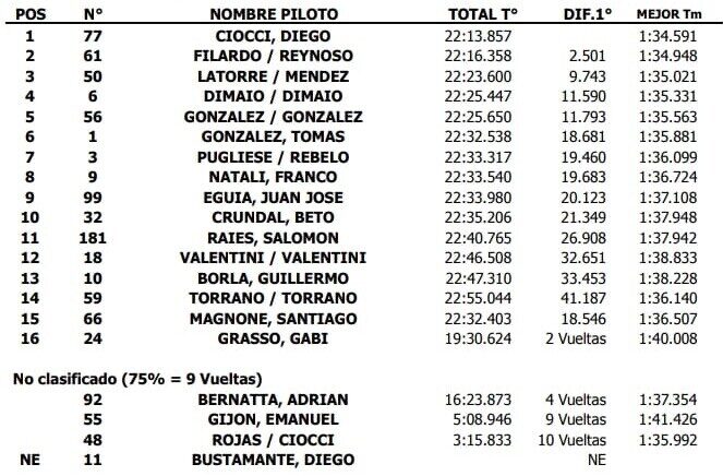 En el GTB, Diego Ciocci superó de manera firme a Sebastián Reynoso, quien llega en lo más alto de la tabla. Con este resultado el campeonato queda al rojo vivo, ya que quienes están en el cuarto escalón del campeonato, el binomio Méndez/Latorre, culminaron en el último peldaño del podio. Lo mismo para la dupla González/González, segundos en la general y cuartos en el clasificador final de la carrera.