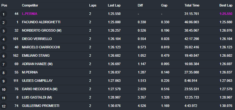 Por el sistema de inversión de grilla en las ocho primeras posiciones, mañana será Mariano Pernía -hermano del poleman- quien partirá adelante en la competencia final. La misma comenzará a las 13:10 hs. y se desarrollará a un total de treinta minutos más una vuelta.