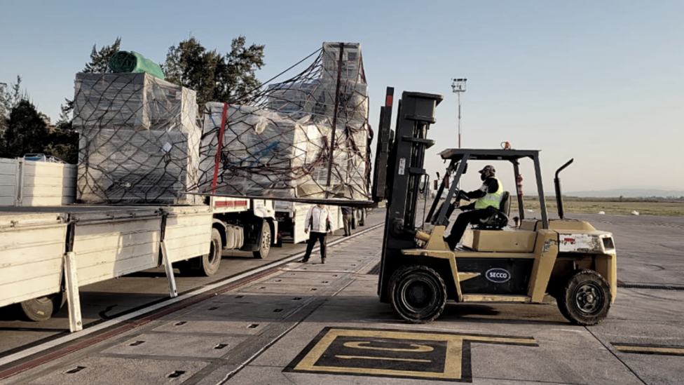 El primero de dos aviones cargo Boeing 777 arribó en la madrugada del miércoles al Aeropuerto Internacional «Domingo Faustino Sarmiento» de San Juan. Allí se transporta una parte de los equipamientos del Mundial de Superbike que llega a Argentina para disputar una fecha del campeonato en San Juan Villicum.