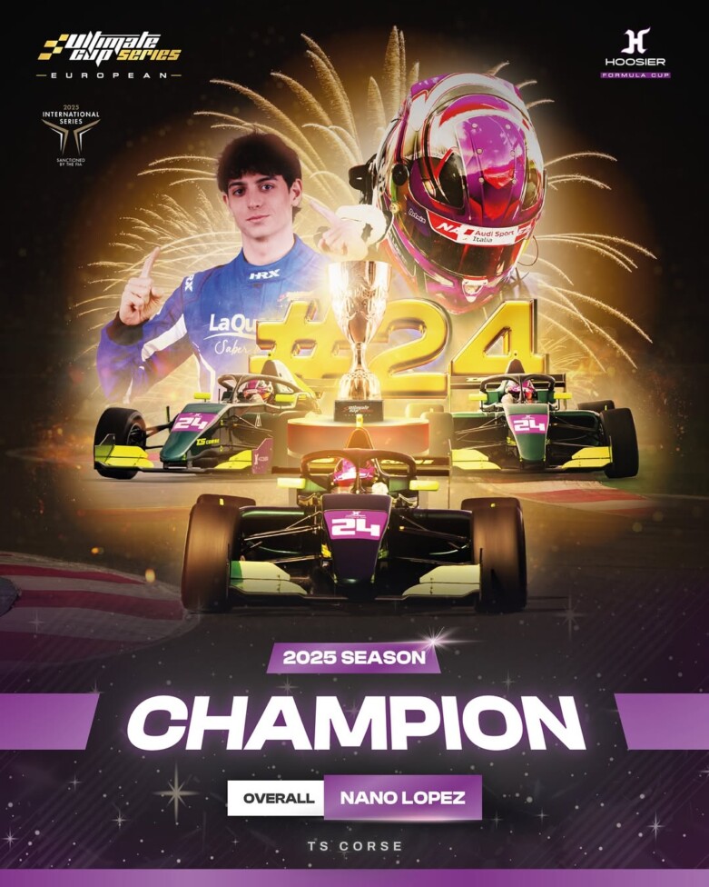 Allí, el representante argentino y oriundo del barrio porteño de Villa Urquiza, celebró en el podio con el equipo TS Corse su primer campeonato internacional tras concluir en la Carrera 1 detrás del ganador «poleman» Aaron Ferrazzano (Winfield Racing), quien ante la sanción a Dylan Estre (Formula Motorsport) quien había terminado primero en pista.