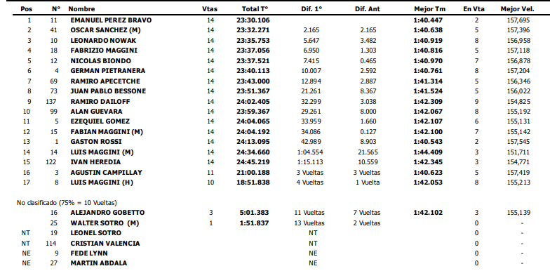 El oriundo de Huanguelén largó desde la primera colocación y desde el momento que se puso en verde el semáforo lideró la competencia de punta a punta. De esta forma, el «Tiki» obtuvo su 3ª victoria de la temporada y comienza con el pie derecho la etapa de definición.