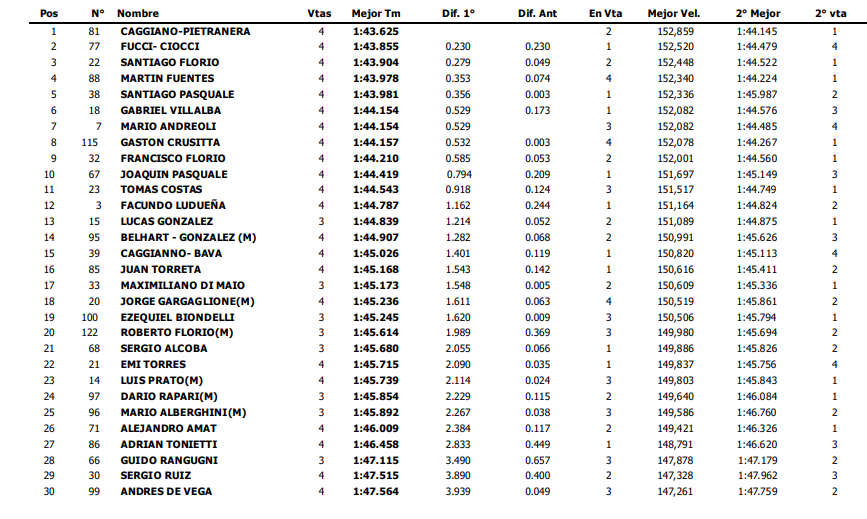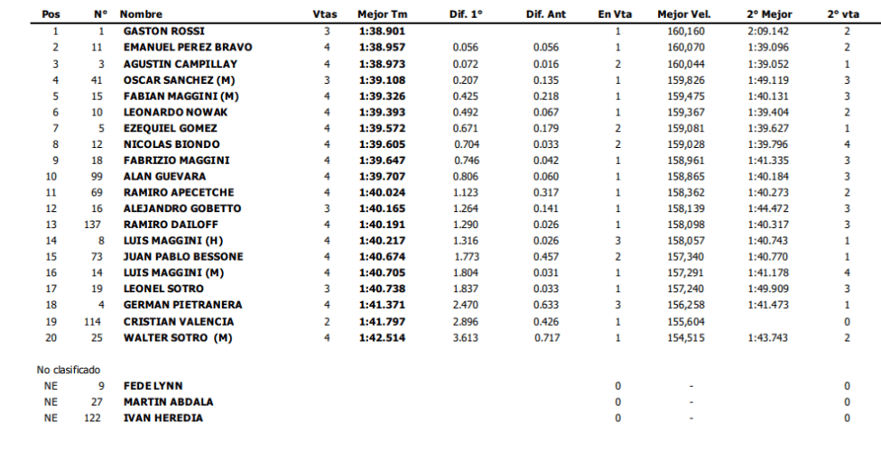 Fueron escoltados por el binomio Fucci-Ciocci, a 0s230 de diferencia, y por Santiago Florio que finalizó tercero a 0s279.