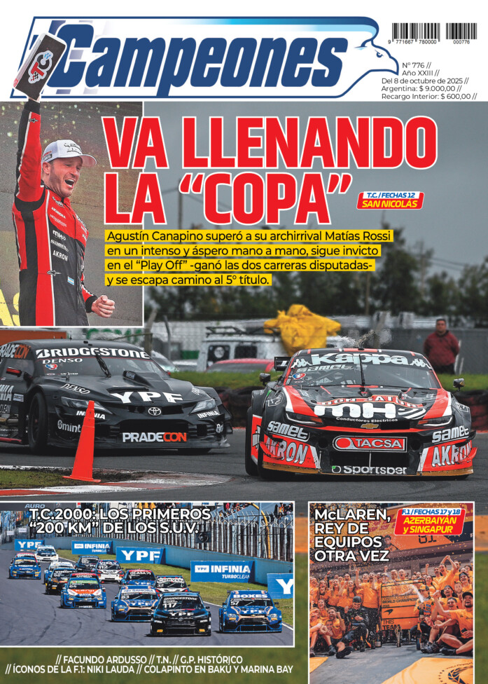 Esta semana llega a todos los quioscos del país la Revista Campeones con el tradicional formato impreso, como también la versión digital para dispositivos móviles. Todos los detalles de Franco Colapinto en la Fórmula 1, un mano a mano con Facundo Ardusso y la victoria de Agustín Canapino en el Turismo Carretera, con la 12° fecha corrida en San Nicolás. También están los informes del automovilismo nacional e internacional con el análisis de los especialistas y mucho más. Reservá en tu quiosco de confianza la edición impresa o lee ahora, antes que nadie y a un precio promocional la ‘edición digital’: