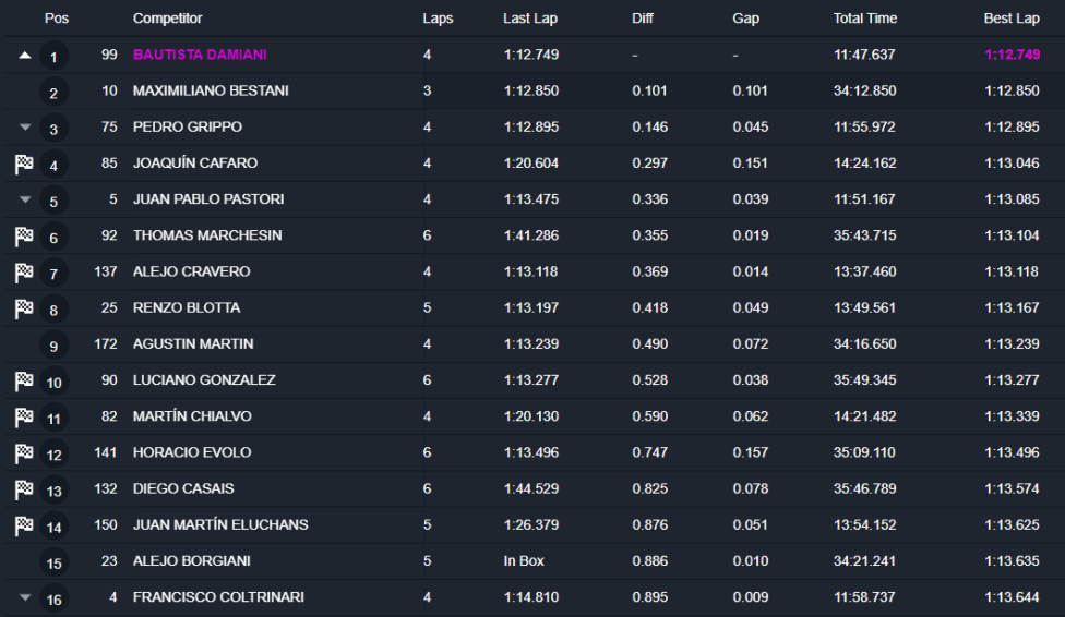 En esta práctica extra, que no estaba prevista en el cronograma original y que brindó la oportunidad de girar durante 15 minutos a cada grupo, Pedro Grippo (Toyota Etios) se ubicó 3º a 0s145. Joaquín Cafaro (Toyota Etios), a 0s297, y Juan Pablo Pastori (Chevrolet Onix), a 0s336, completaron el “top 5”.