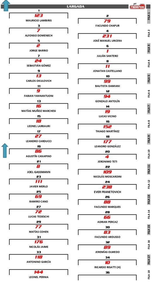 La Final de la Clase 3 en el circuito entrerriano de 4.219 metros está prevista para las 14:00 y tendrá una duración de 20 vueltas ó 40 minutos. Mauricio Lambiris (Ford Focus) y Facundo Chapur (Honda Civic) conformarán la 1ª fila, mientras que Alfonso Domenech (VW Virtus) y José Manuel Urcera (Ford Focus) partirán desde la 2ª.