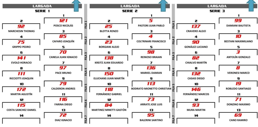 Las series se correrán hoy. La 1ª se largará a las 14:30, con Nicolás Posco (Ford Fiesta Kinetic) y Thomas Marchesín (Ford Fiesta Kinetic) en la 1ª fila. Juan Pablo Pastori (Chevrolet Onix) y Renzo Blotta (Toyota Etios) partirán adelante en la 2ª batería, que comenzará a las 15:10. El 3º parcial, en tanto, se pondrá en marcha a las 15:50, con Bautista Damiani (Toyota Yaris) y Alejo Cravero (Toyota Etios) en las mejores posiciones de largada.