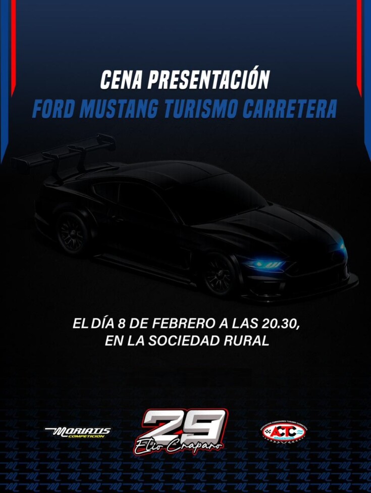 A partir de la hora 20:30 del próximo domingo 8 de febrero, en la Sociedad Rural de Chacabuco, Elio Craparo estará presentando el Ford Mustang con el cual competirá en el campeonato de Turismo Carretera 2026, con una cena.