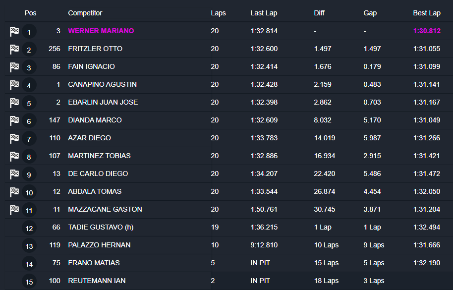La Final de la 3ª fecha del campeonato 2026 tuvo como absoluto dominador a Werner, quien se escapó desde el vamos y aprovechó la pelea que se dio a sus espaldas para administrar a su conveniencia la diferencia con sus rivales en el circuito sin chicana del autódromo de La Plata donde no ganaba con el TCPK desde el 19 de mayo de 2024.